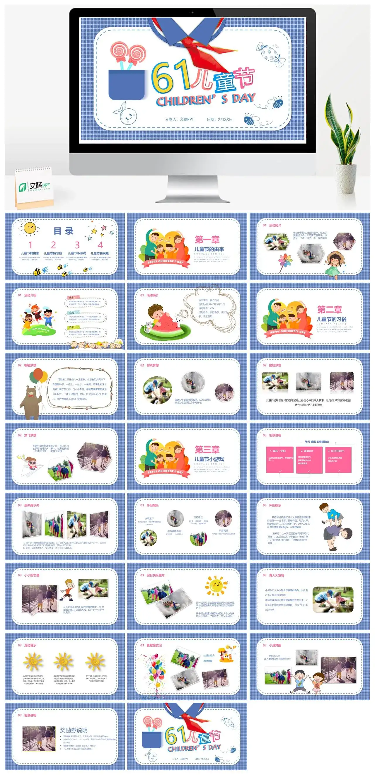 这是一套经过精心筛选关于“蓝色卡通六一儿童节主题班会PPT模板”主题可免费下载的精品PPT模板,模板总共包含24个精致PPT页面。本模板属于:儿童节分类,模板设计精心、创意、高端,适用于【教育培训PPT】【蓝色PPT模板】【卡通动漫PPT】【节日PPT模板】相关主题PPT制作的模板