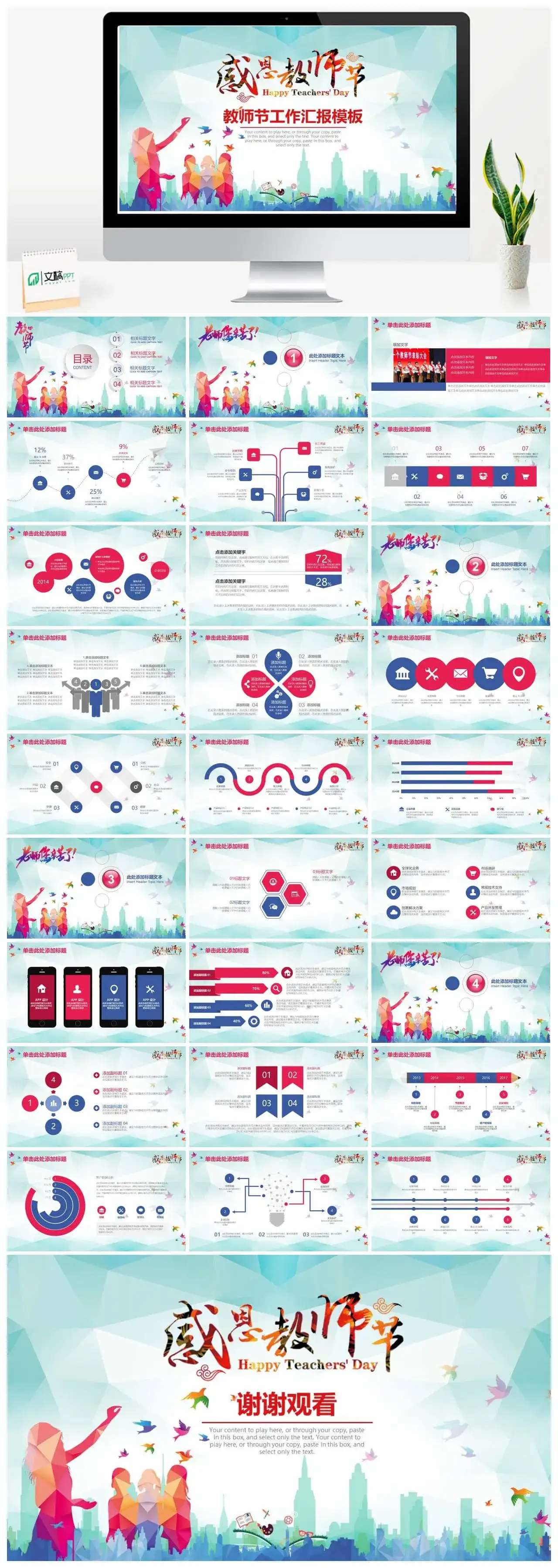 这是一套经过精心筛选关于“感恩教师节教育教学工作总结计划动态PPT模板”主题可免费下载的精品PPT模板,模板总共包含29个精致PPT页面。本模板属于:教师节分类,模板设计精心、创意、高端,适用于【节日PPT模板】【彩色PPT模板】相关主题PPT制作的模板