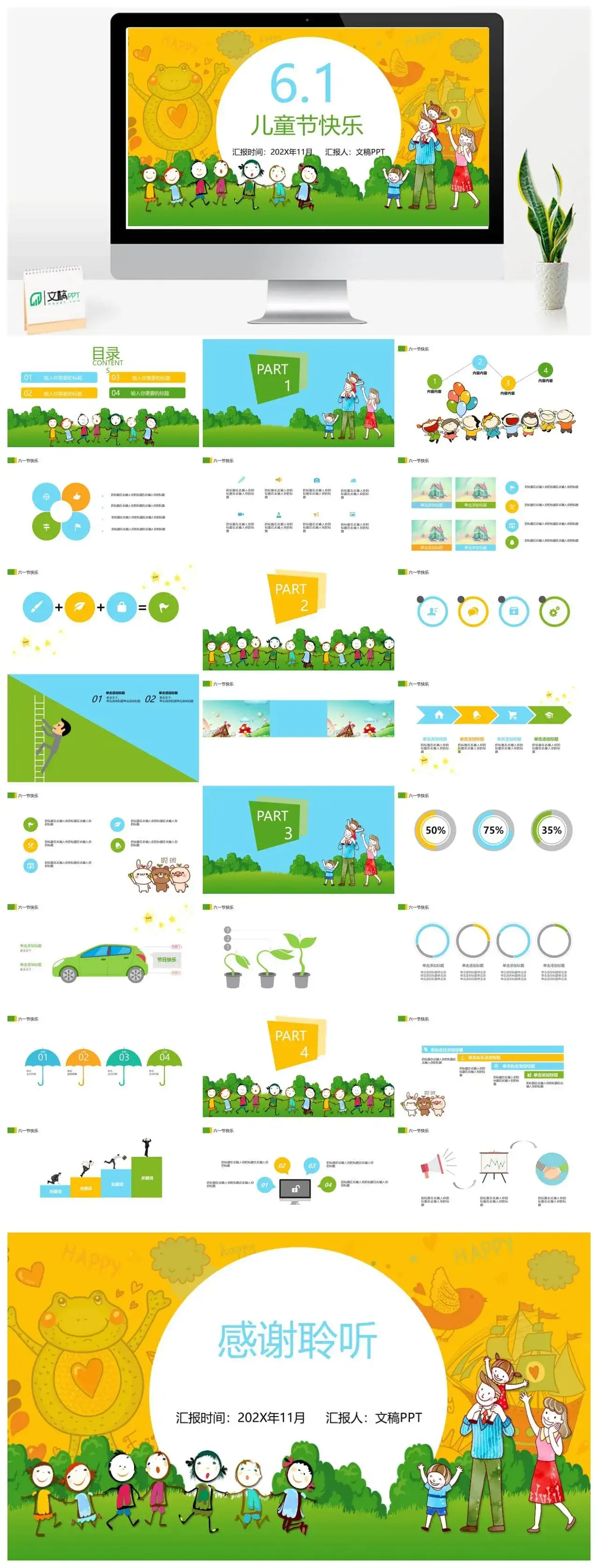 这是一套经过精心筛选关于“6.1儿童节快乐主题班会活动策划PPT模板”主题可免费下载的精品PPT模板,模板总共包含26个精致PPT页面。本模板属于:儿童节分类,模板设计精心、创意、高端,适用于【彩色PPT模板】【卡通动漫PPT】相关主题PPT制作的模板