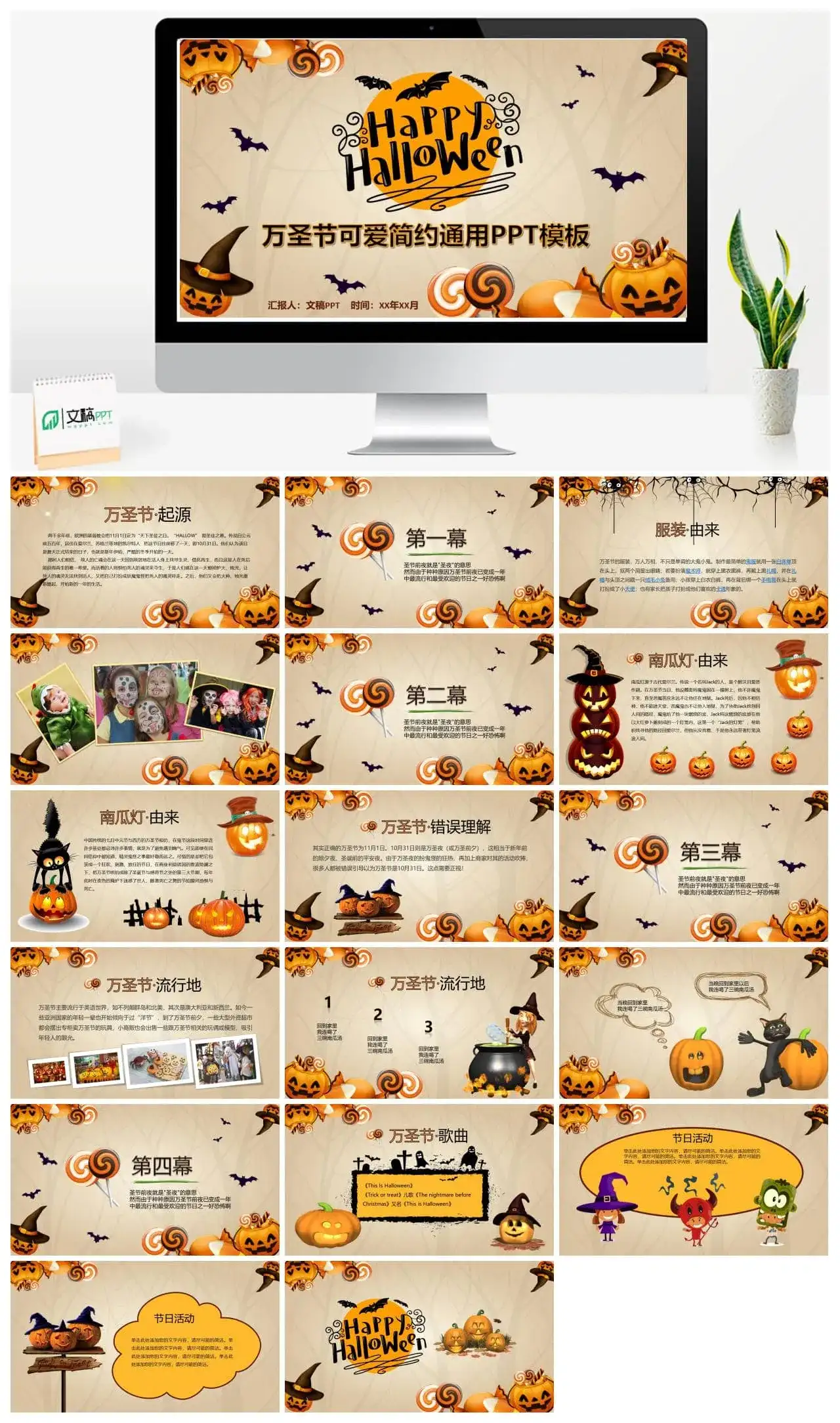 这是一套经过精心筛选关于“万圣节可爱简约通用主题班会PPT模板”主题可免费下载的精品PPT模板,模板总共包含18个精致PPT页面。本模板属于:万圣节分类,模板设计精心、创意、高端,适用于【节日PPT模板】【简约PPT模板】【橙色PPT模板】相关主题PPT制作的模板