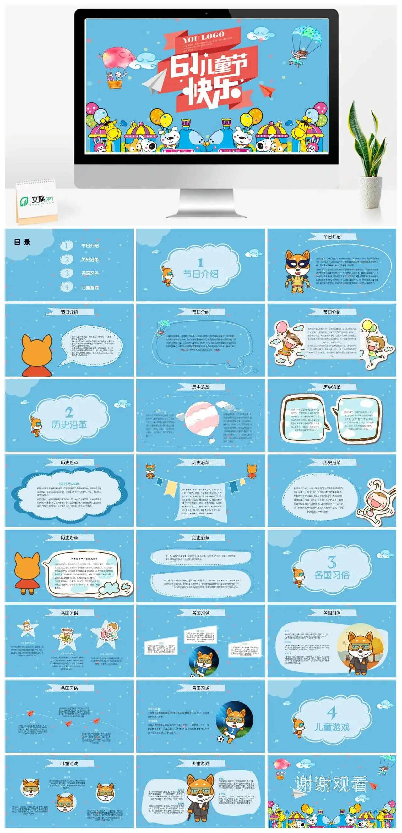 这是一套经过精心筛选关于“欢乐可爱动物儿童节PPT模板”主题可免费下载的精品PPT模板,模板总共包含25个精致PPT页面。本模板属于:儿童节分类,模板设计精心、创意、高端,适用于【节日PPT模板】【蓝色PPT模板】相关主题PPT制作的模板