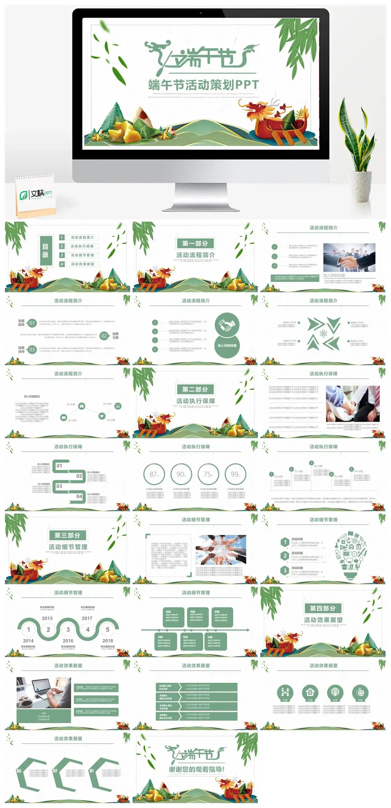 当前位置: 首页节日PPT正文 端午节活动策划PPT模板 节日PPT 专属 这是一套经过精心筛选关于“端午节活动策划PPT模板”主题可免费下载的精品PPT模板,模板总共包含24个精致PPT页面。本模板属于:端午节分类,模板设计精心、创意、高端,适用于【节日PPT模板】【绿色PPT模板】相关主题PPT制作的模板 端午节日