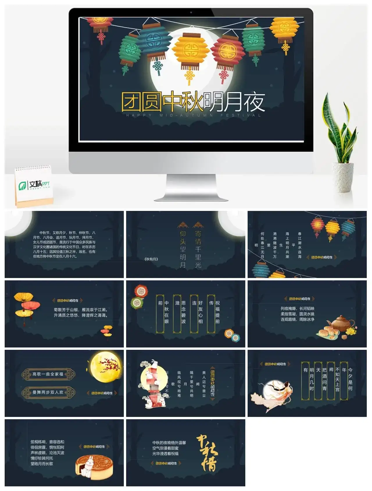 当前位置: 首页节日PPT正文 团员中秋明月夜PPT模板 节日PPT 专属 这是一套经过精心筛选关于“团员中秋明月夜PPT模板”主题可免费下载的精品PPT模板,模板总共包含12个精致PPT页面。本模板属于:中秋节分类,模板设计精心、创意、高端,适用于【节日PPT模板】【蓝色PPT模板】相关主题PPT制作的模板 中秋节日